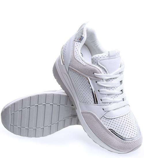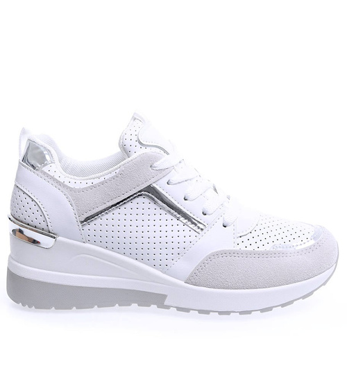 Biało szare sneakersy damskie na niskim koturnie /A10-3 15594 T489/