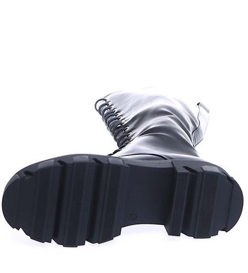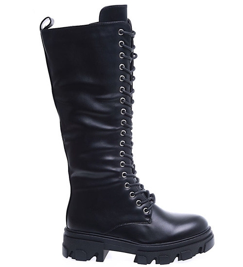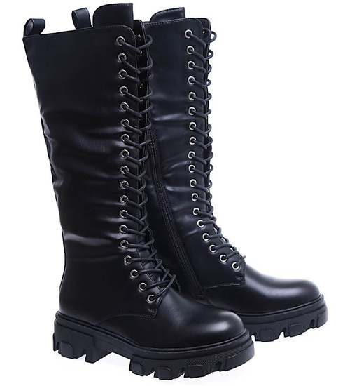 Czarne matowe wysokie trapery glany z dopinaną ozdobą /F3-1 15377A T6/