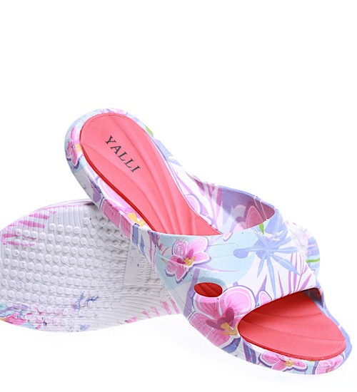 - Wododporne damskie klapki wykonane z gumowego materiału.