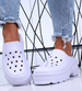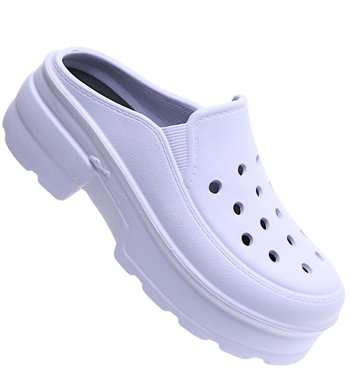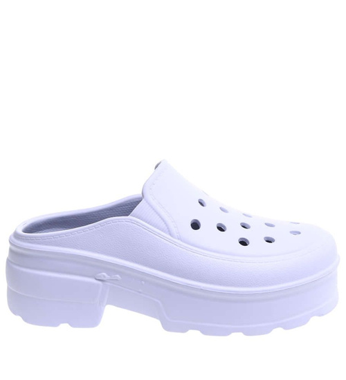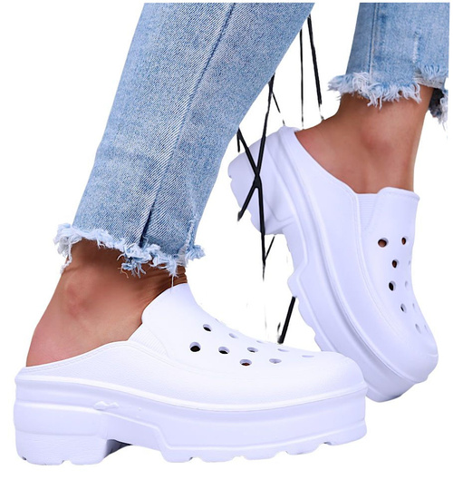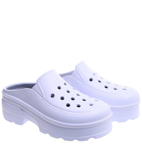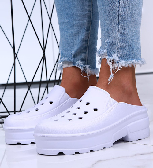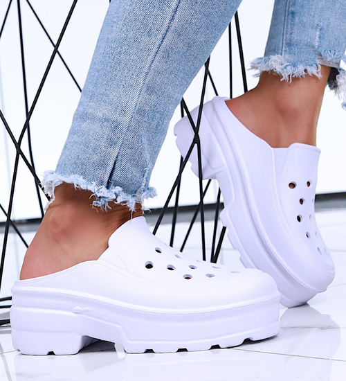 - Białe klapki damskie wykonane z miękkiego, piankowo gumowego materiału.