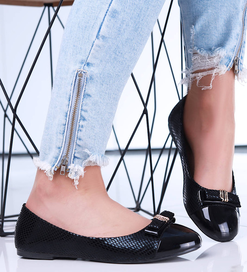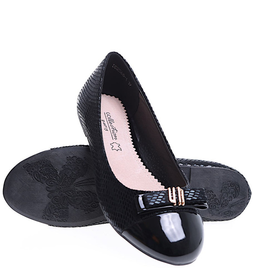 Klasyczne czarne balerinki z kokardką /G7-2 15640 T194/