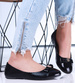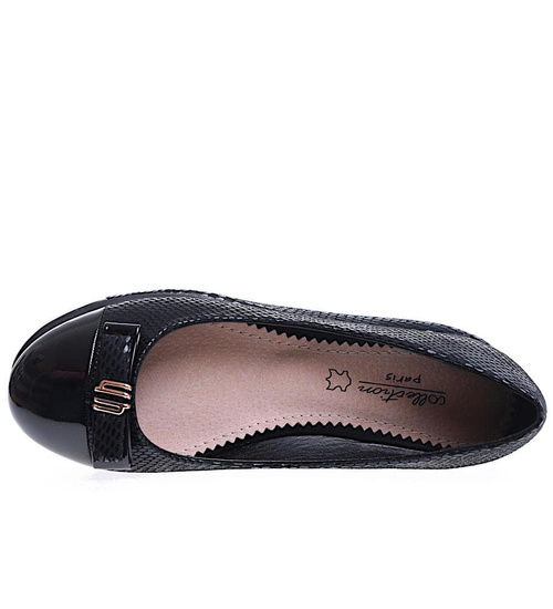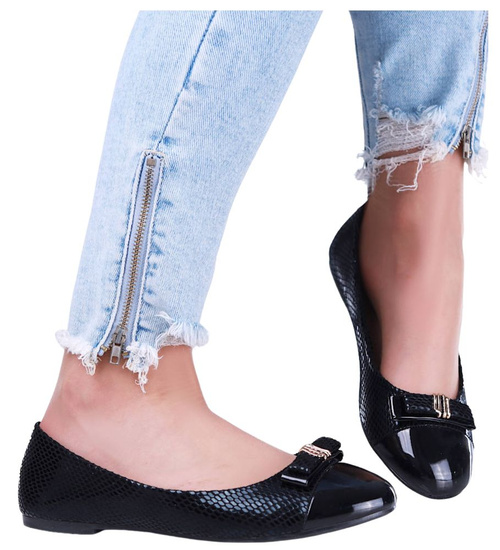 - Klasyczne czarne balerinki wykonane z lakierowanej skórki eko.