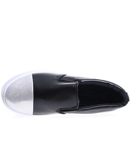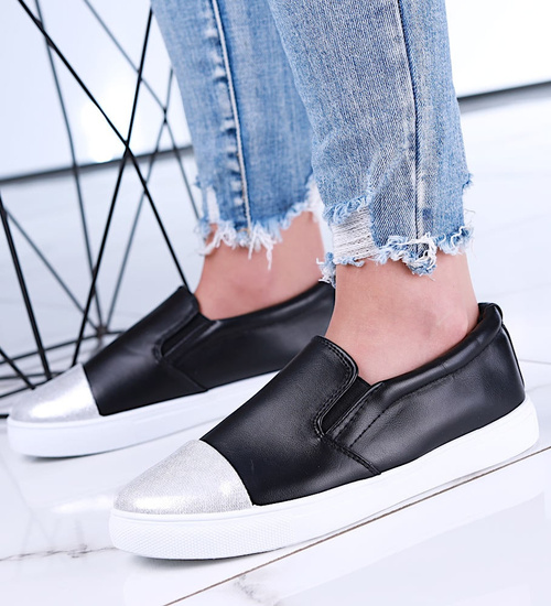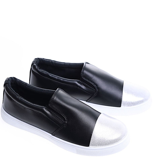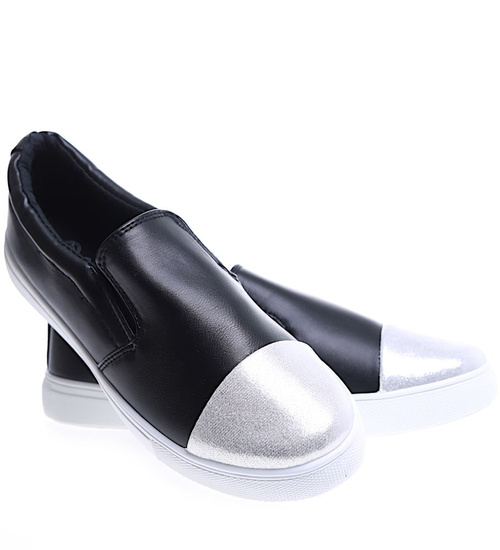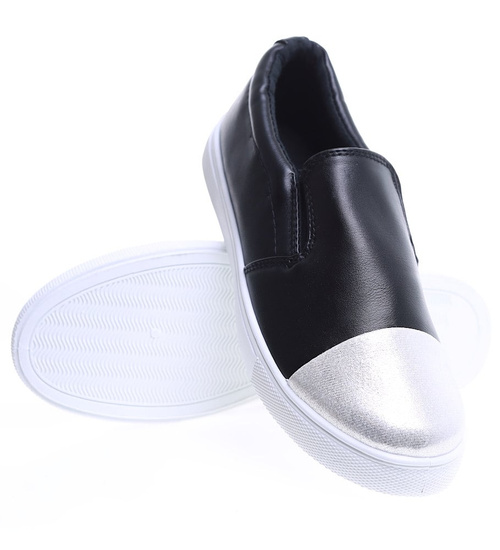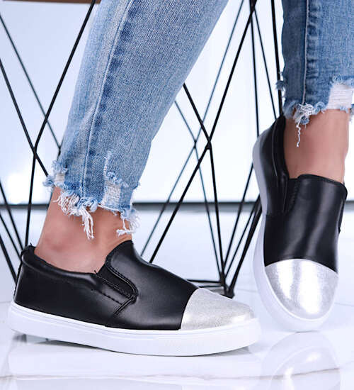 Wsuwane czarne trampki damskie z miękiej skórki eko /B5-2 15649 T184/