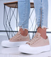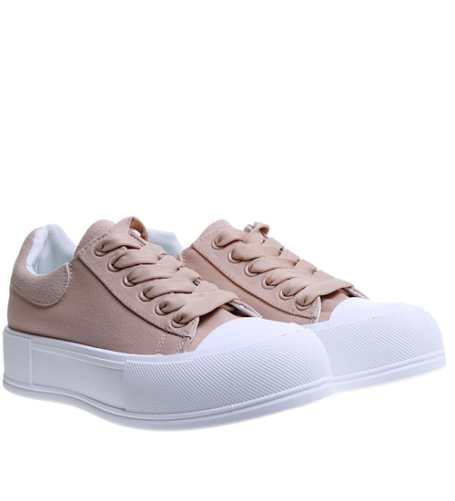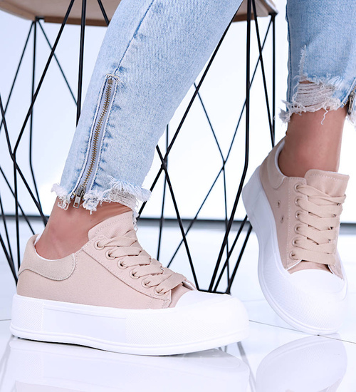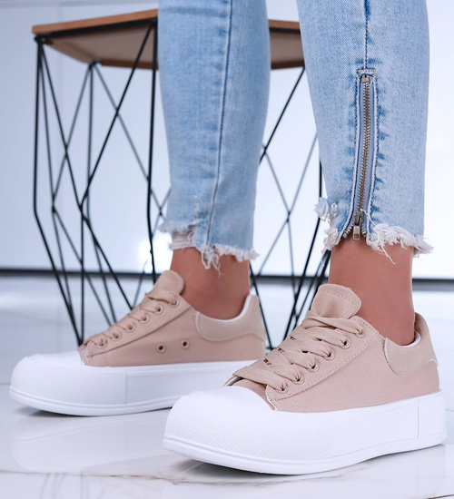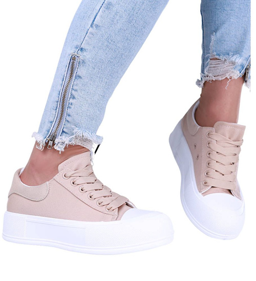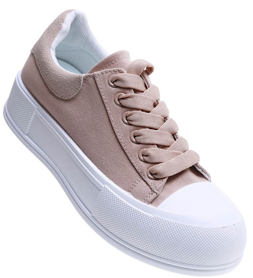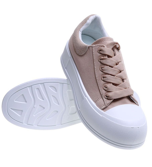 Sznurowane beżowe trampki damskie na platformie /F7-2 15679 T189/
