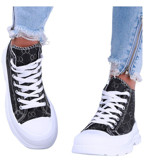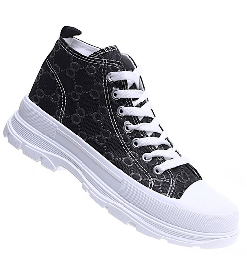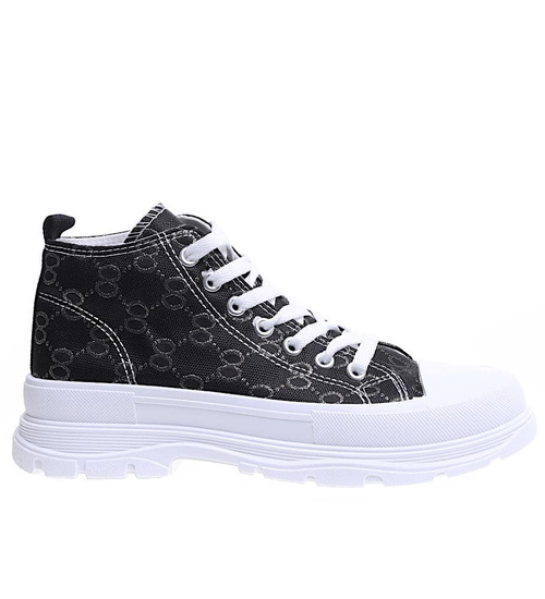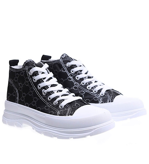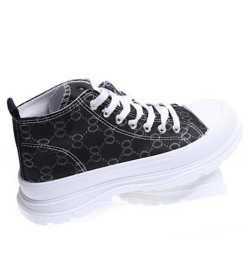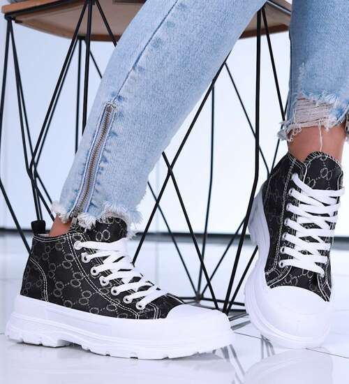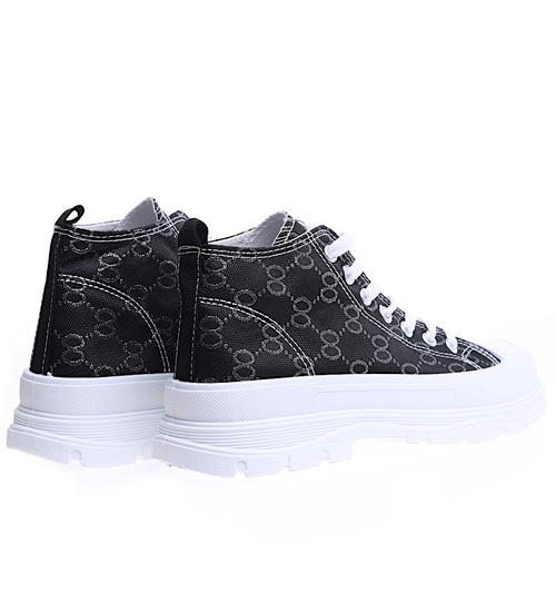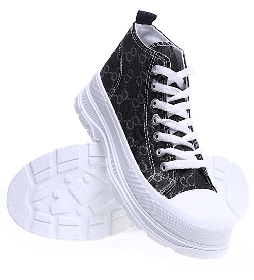 Sznurowane wysokie czarne trampki damskie na platformie /F1-3 15681 T184/