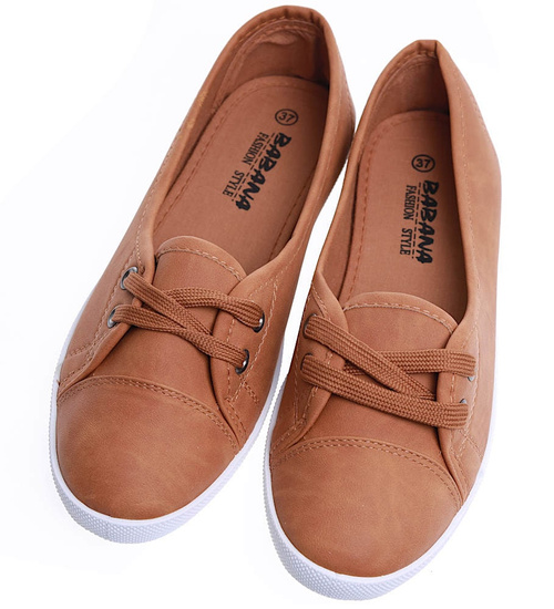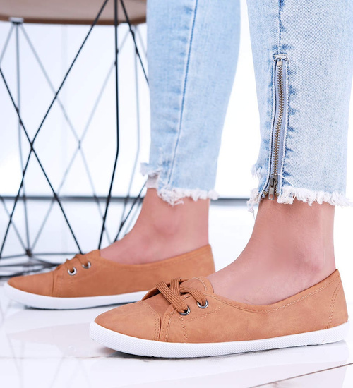 - Stylowe damskie trampki w modnym karmelowym kolorze, wykonane z wysokiej jakości materiału skóropodobnego.