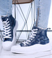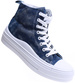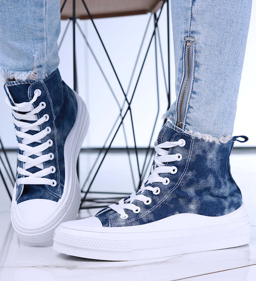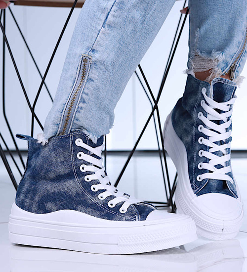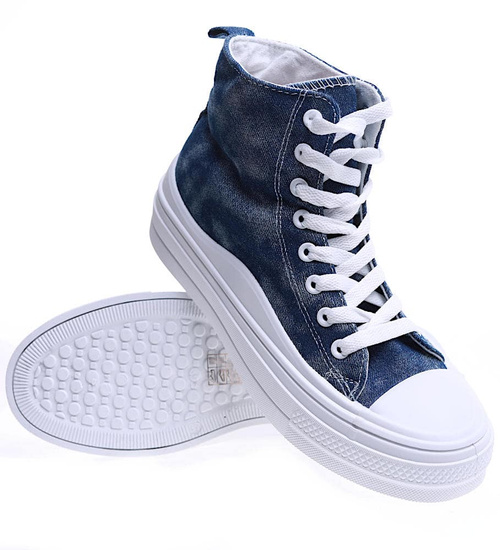 Sznurowane wysokie granatowe trampki damskie na platformie /G10-3 15667 T189/