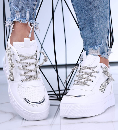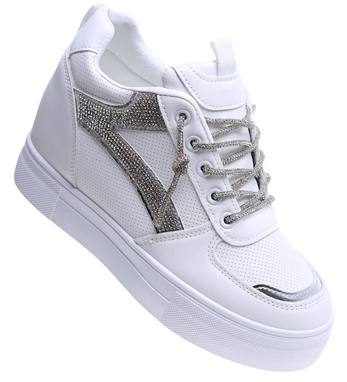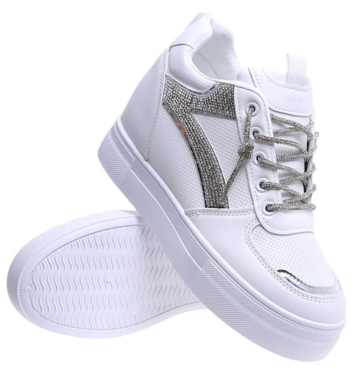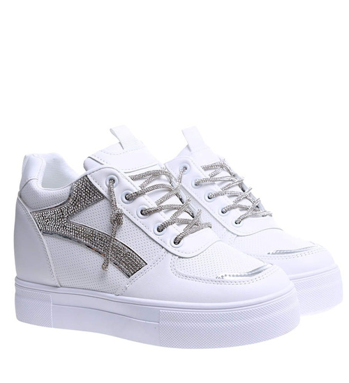 Białe trampki sneakersy na koturnie /F7-3 15665 T673/