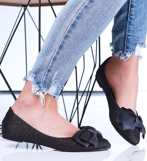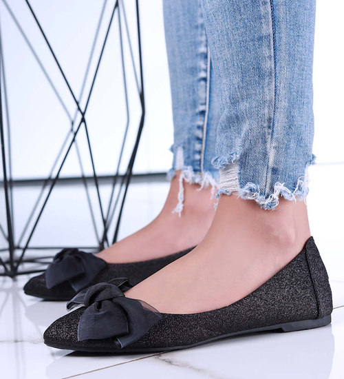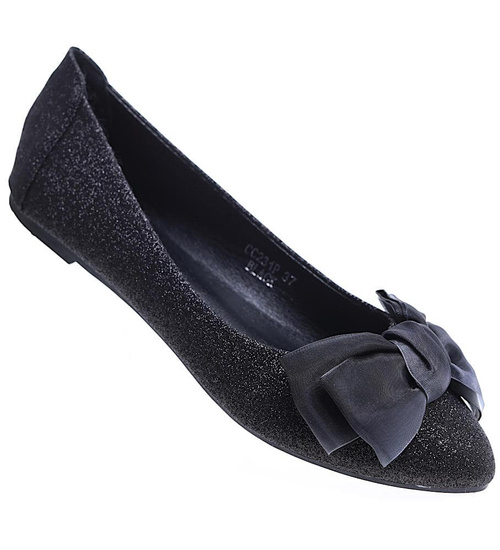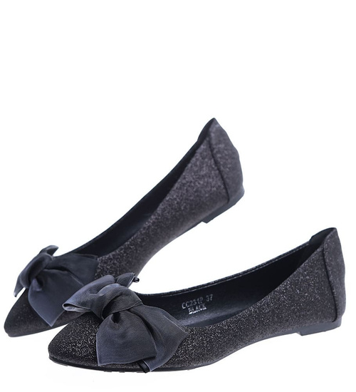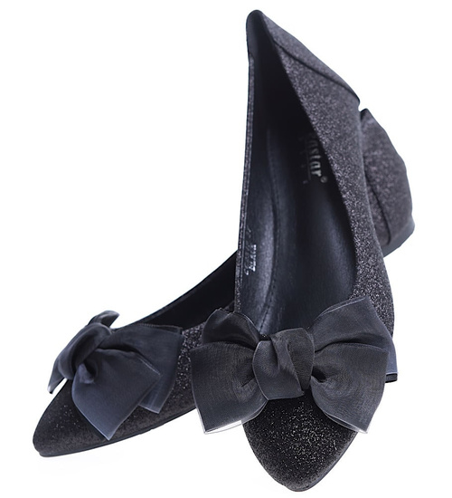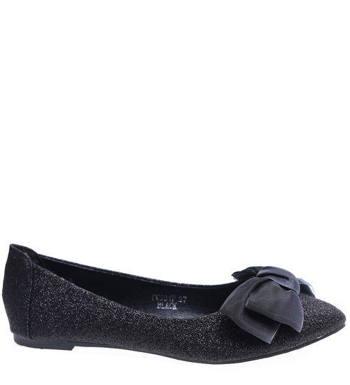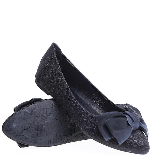 Czarne balerinki damskie z kokardą /E10-2 15670 T344/