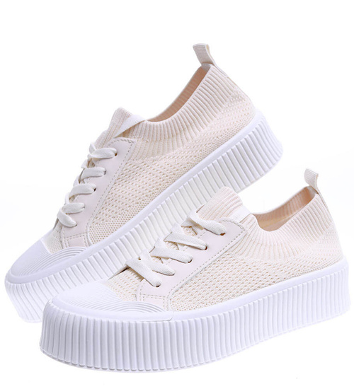 Wsuwane beżowe trampki damskie na platformie /E8-3 15668 T244/