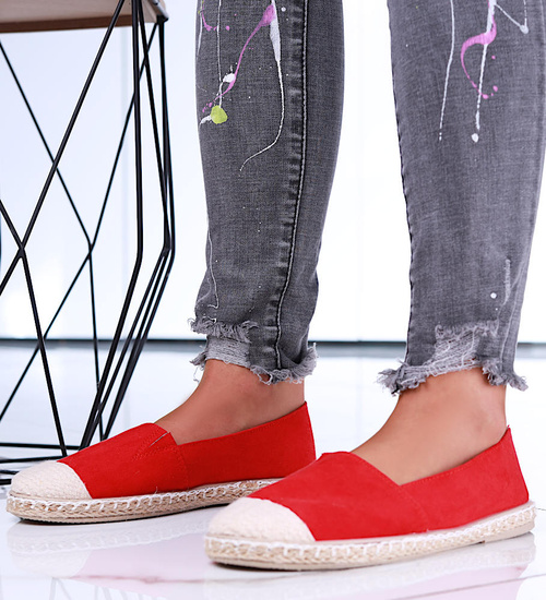 Wsuwane czerwone balerinki espadryle /G1-2 15658 T194/