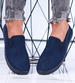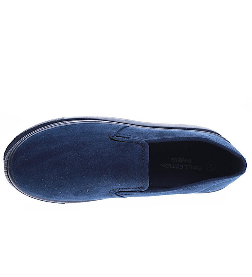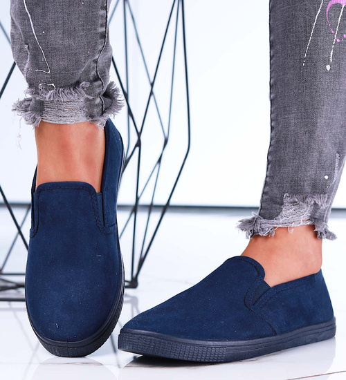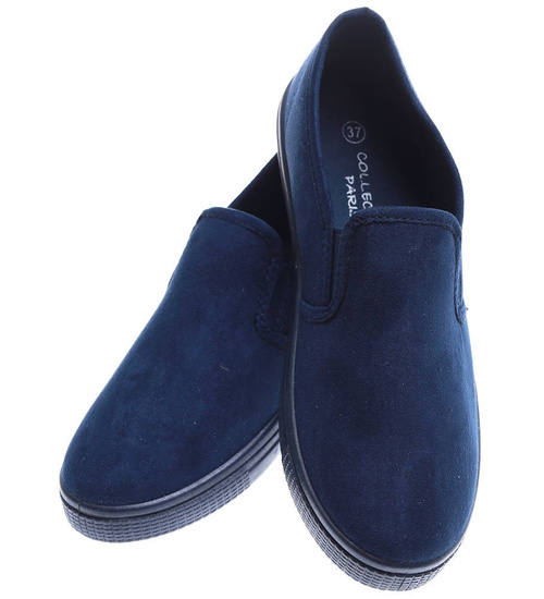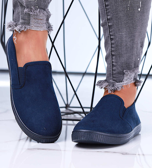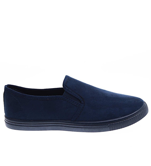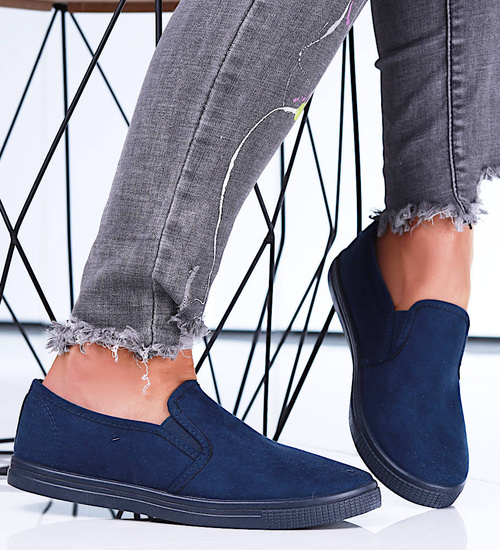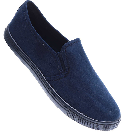 - Wsuwane granatowe tenisówki damskie wykonane z miękkiego materiału.