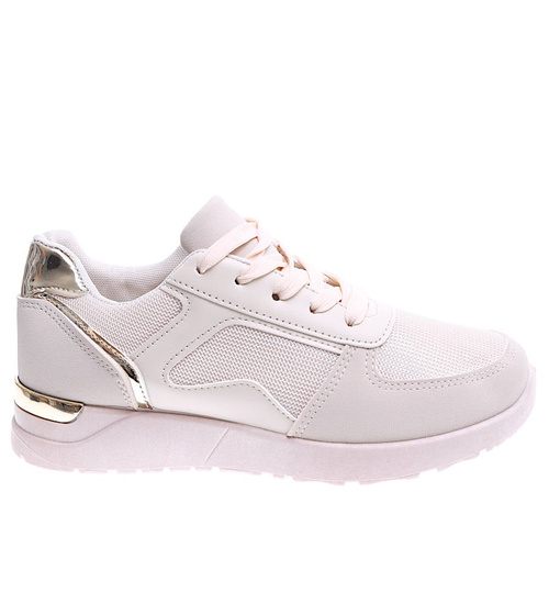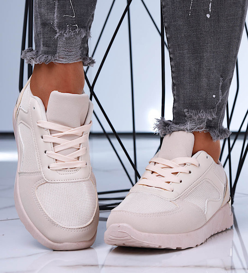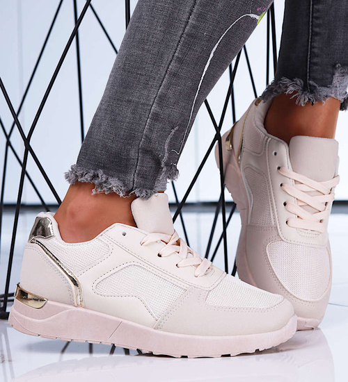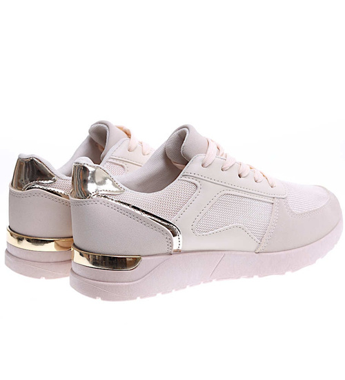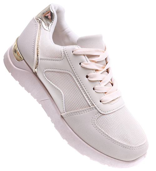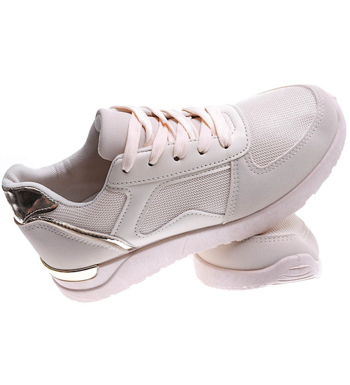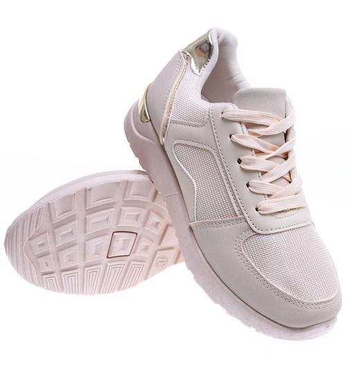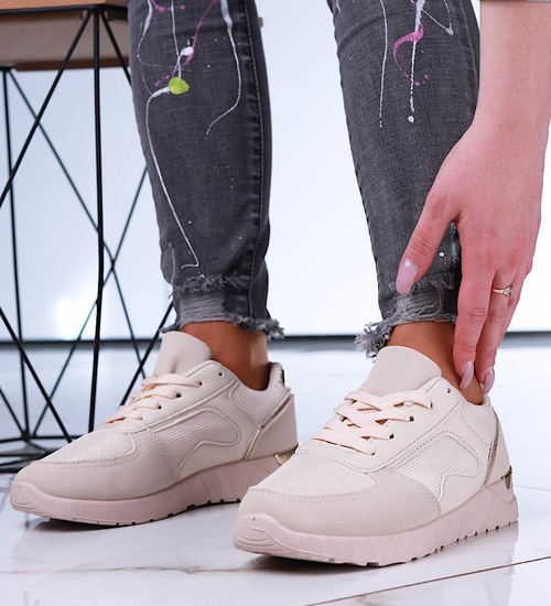 Sznurowane beżowe buty sportowe damskie /D8-2 15697 T287/