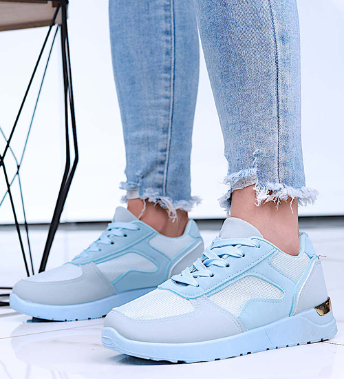 - Sznurowane lekkie buty sportowe wykonane z zamszowego materiału w kolorze niebieskim