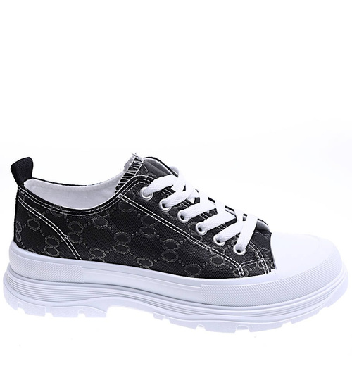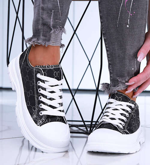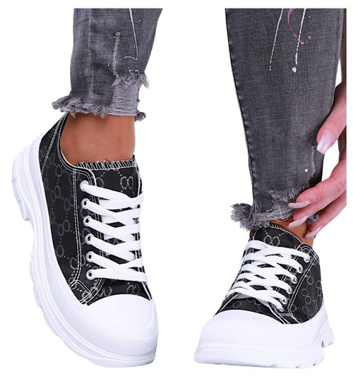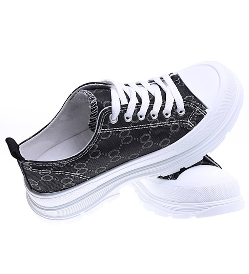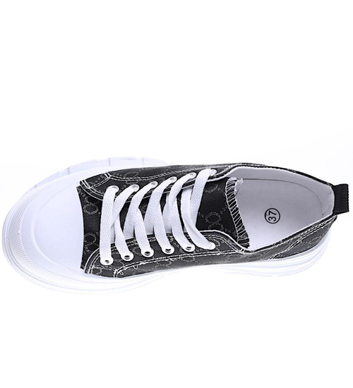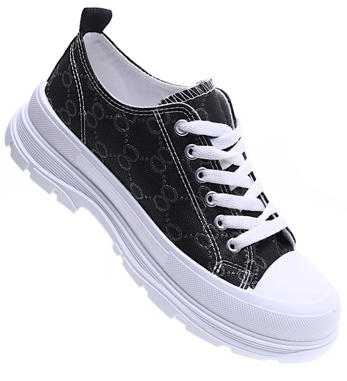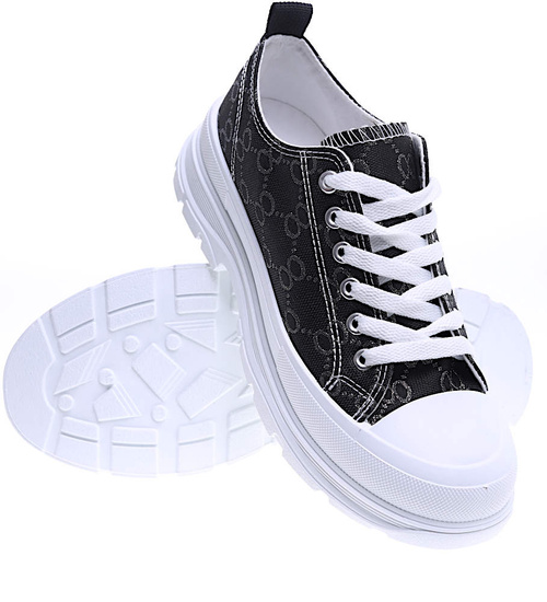 Wiązane czarne damskie trampki na elastycznej platformie /A4-3 15695 D T184/