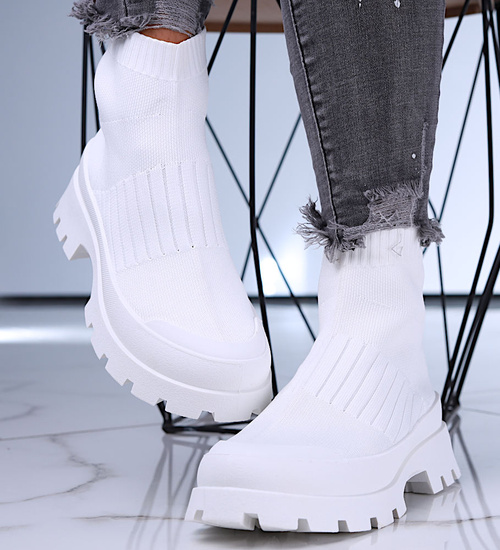 Wiosenne białe botki na platformie /G12-1 15720 T113-5/