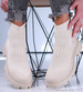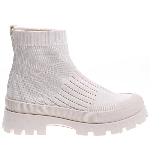 - Cholewka wykonana z elastycznego materiału zapewnia doskonałe dopasowanie do kształtu nóg, co sprawia, że botki są niezwykle wygodne i zapewniają swobodę ruchu. Przewiewny materiał sprawia, że stopy pozostają zawsze świeże i komfortowe, nawet podczas długiego noszenia.