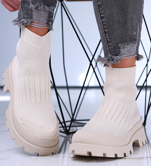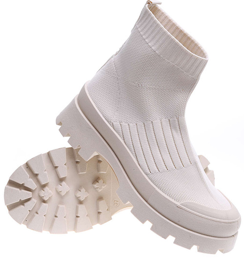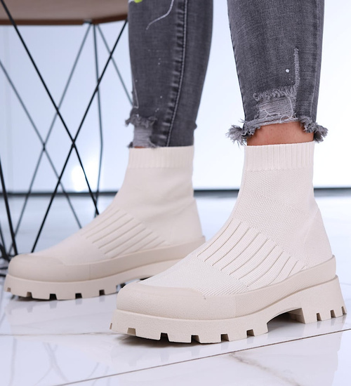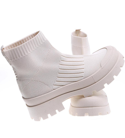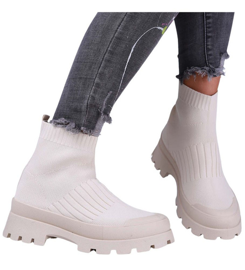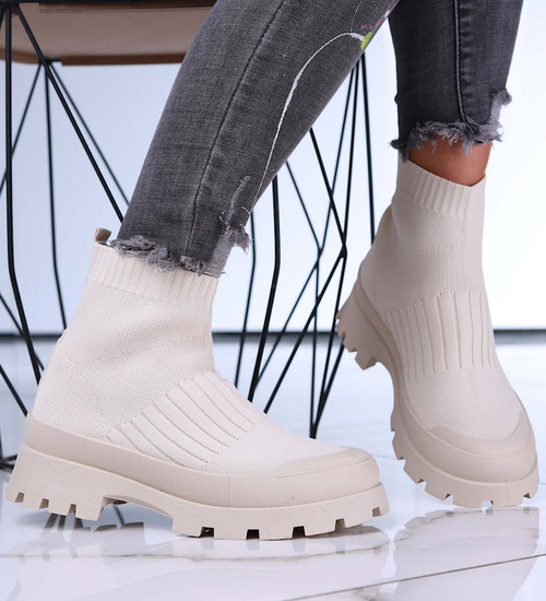 Wiosenne beżowe botki na platformie /G10-3 15706 T113-5/