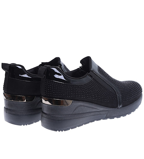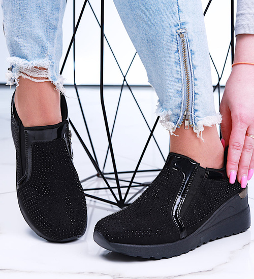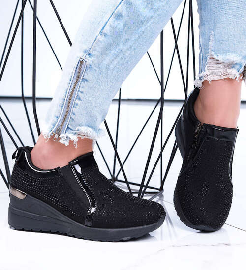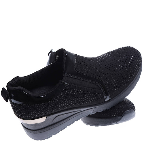 - Wsuwane czarne sneakersy na niskim koturnie, które są idealnym połączeniem stylu i wygody.