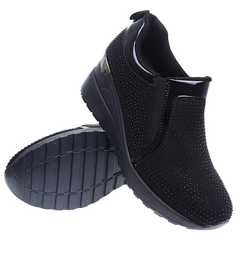 Czarne wsuwane trampki sneakersy na koturnie /A4-2 15728A T484/