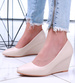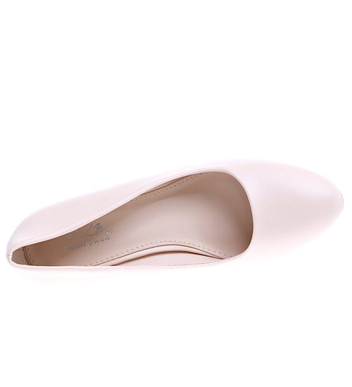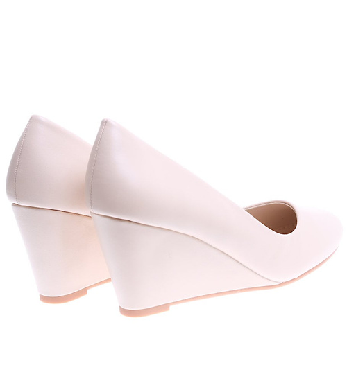 Klasyczne beżowe czółenka na koturnie B7-3 15756 T323/