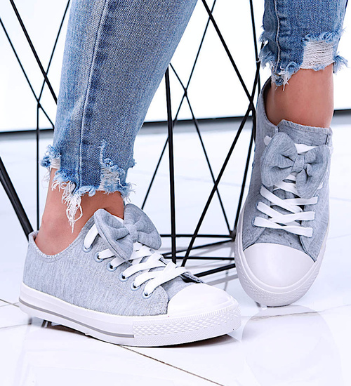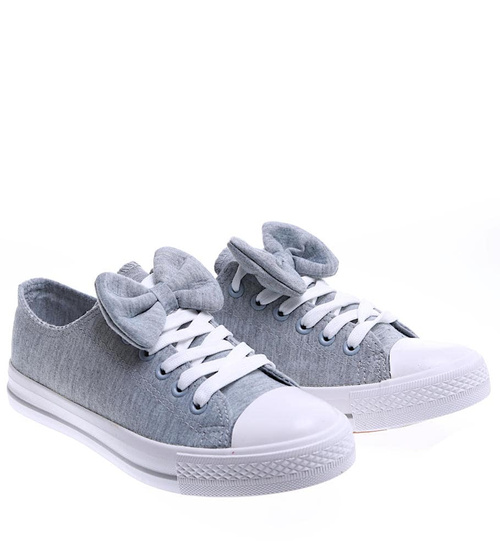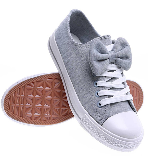 Sznurowane szare trampki z kokardką /D2-2 1650 T138/