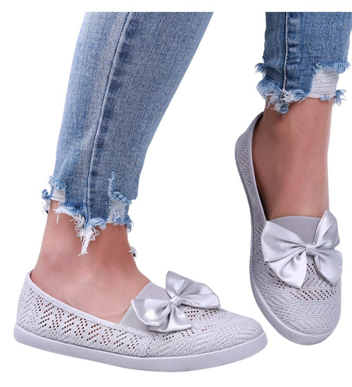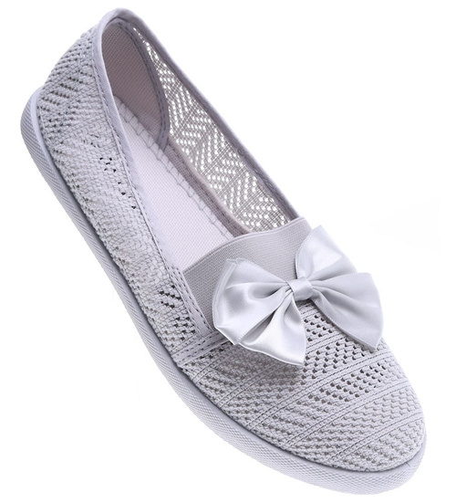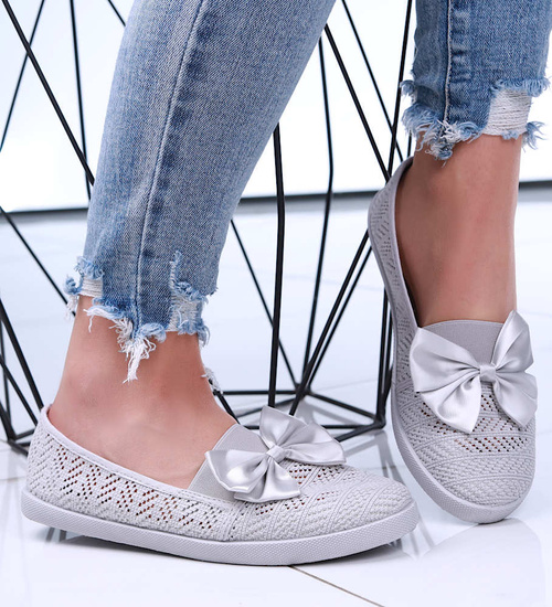 - Ażurowe tenisówki wykonane z przewiewnego materiału koronkowego w modym, szarym kolorze.