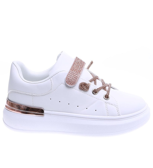 Biało złote dziewczęce trampki na rzep /B1-3 15787 T5/