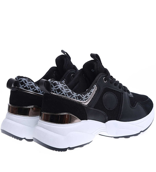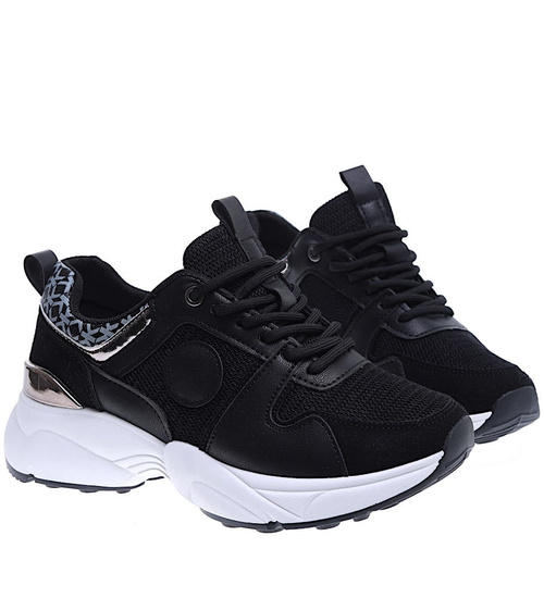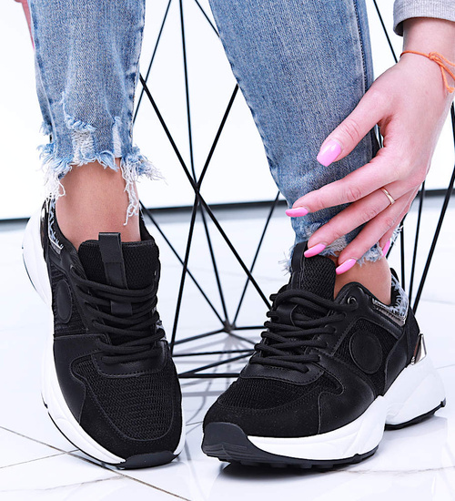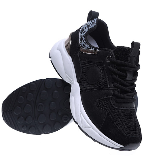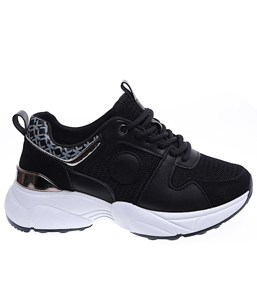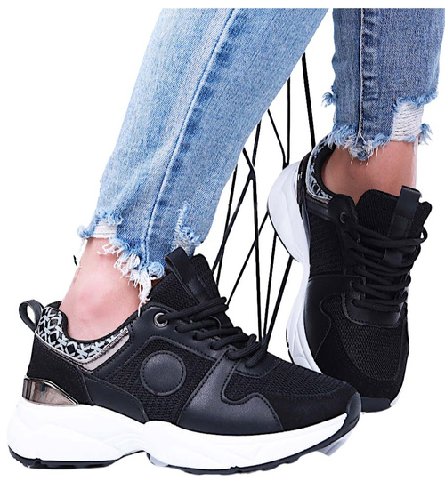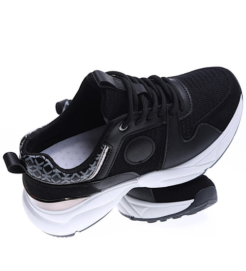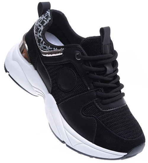 Czarne sportowe buty damskie sznurowane /D7-1 15796 T293/