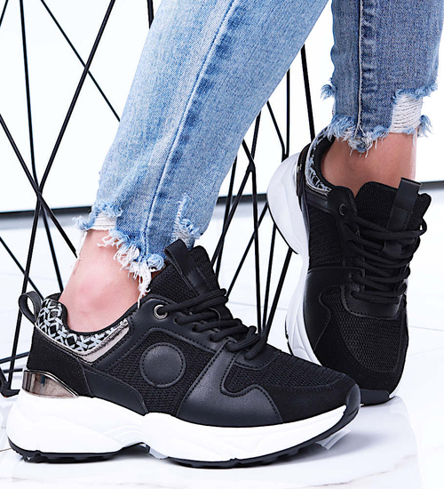 - Wygodne damskie buty sportowe wykonane z miękkich materiałów, dostępne w zawsze modnym kolorze czarnym.
