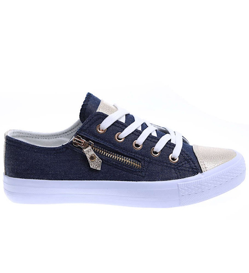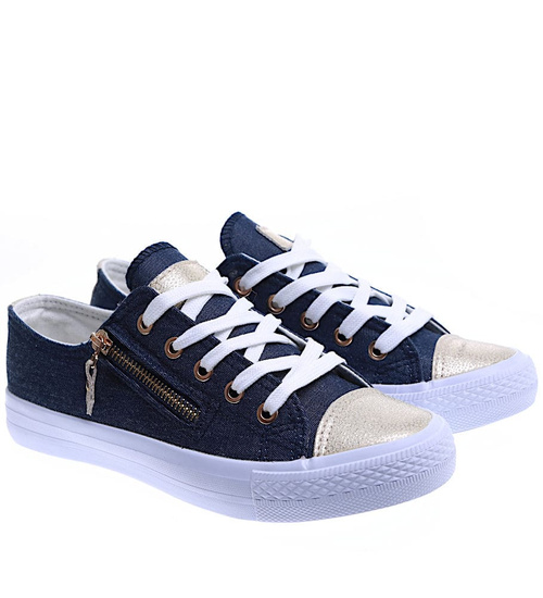 Sznurowane granatowe trampki ze złotymi noskami /F10-3 15805 T133/