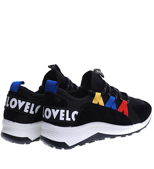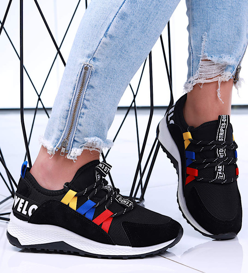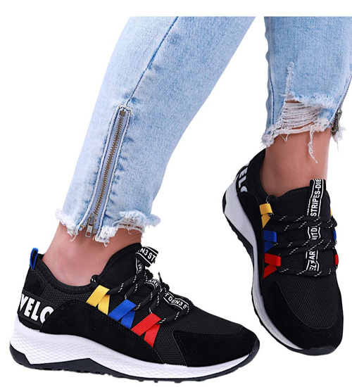Czarne wsuwane buty sportowe z kolorowymi dodatkami /G6-3 15806 T292/