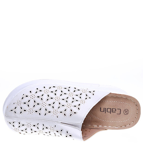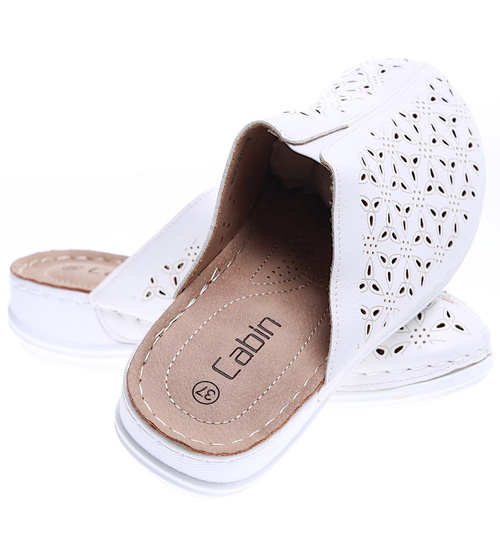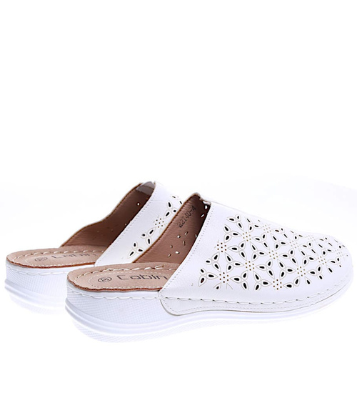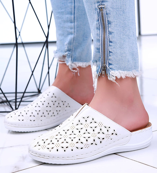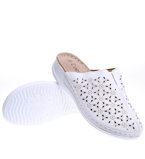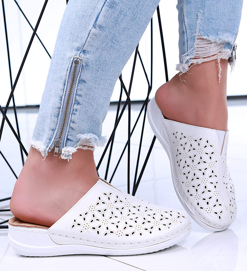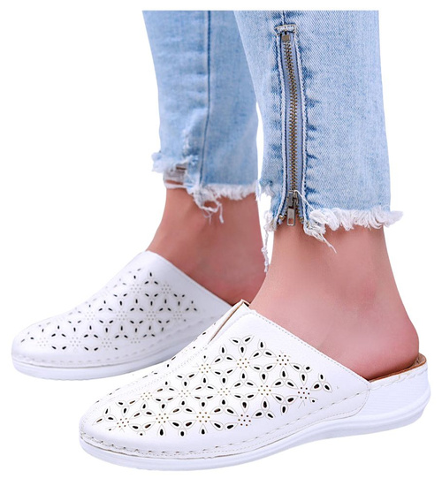 Białe ażurowe damskie klapki na płaskim obcasie /B2-2 15801 T394/