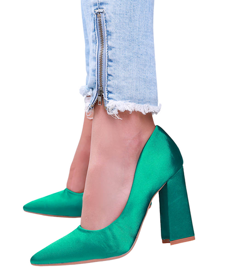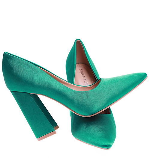 Zielone czółenka damskie na obcasie /G10-3 15862 T155/