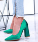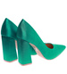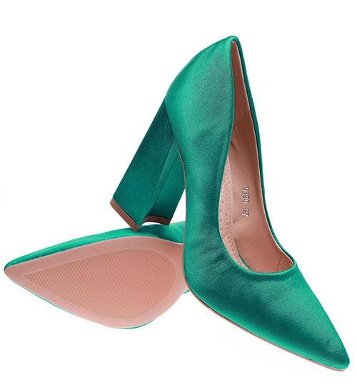 - Wykonane z wysokiej jakości materiału skóropodobnego, te czółenka zachwycają atłasowym, zielonym wykończeniem, dodając niepowtarzalny akcent każdej stylizacji.