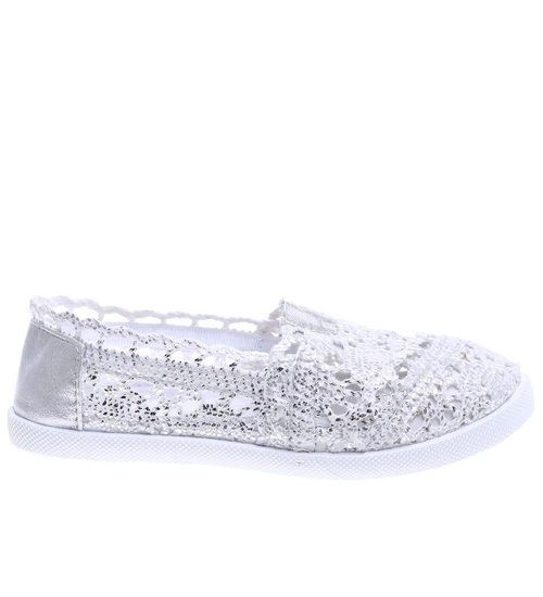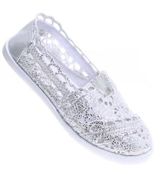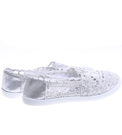- Srebrne dziewczęce letnie balerinki wykonane z przewiewnego, koronkowego materiału - prawdziwa perełka w Twojej letniej garderobie!