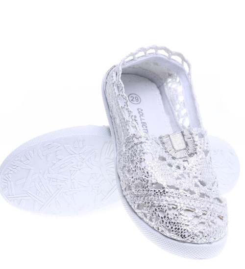 Srebrne koronkowe dziewczęce balerinki /E9-2 15831 T8-6/