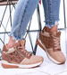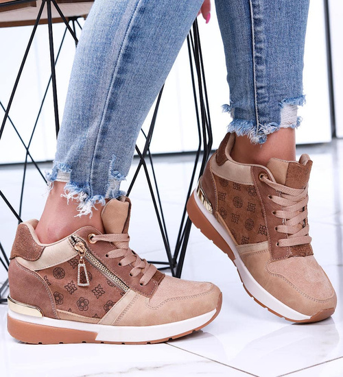 - Damskie trampki sneakersy postawione na ukrytym koturnie o średniej wysokości.