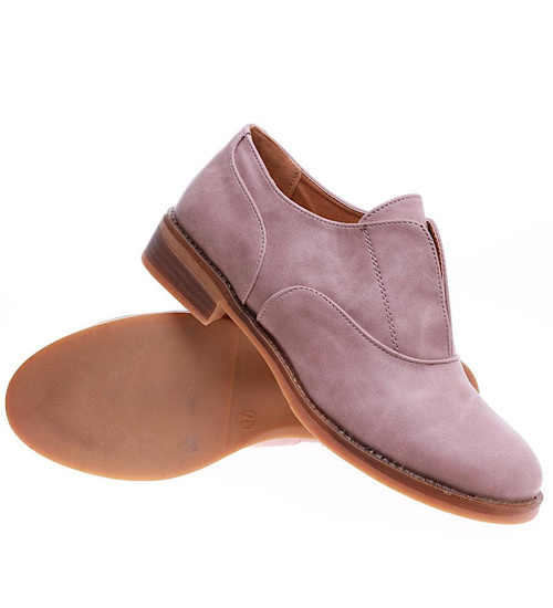 - Wsuwane beżowe półbuty wykonane z miękkiego, skóropodobnego materiału.
