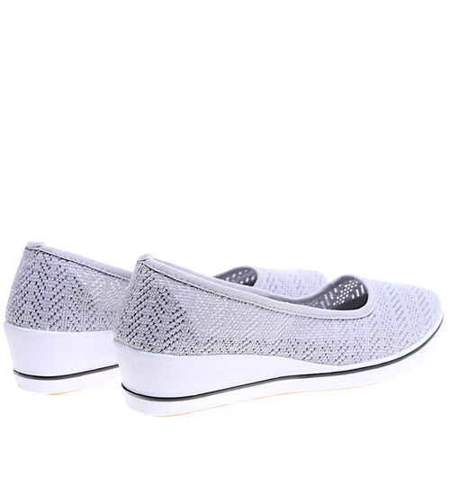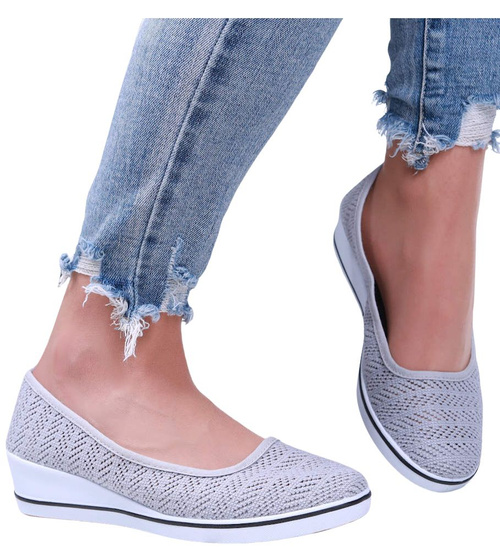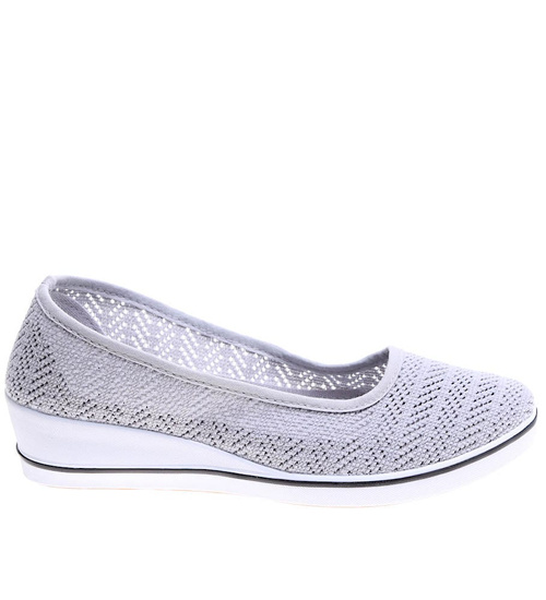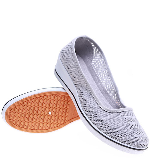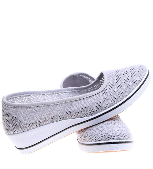 - Wsuwane tenisówki damskie wykonane z z koronkowego materiału w szarym kolorze.