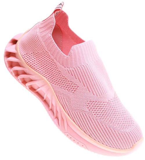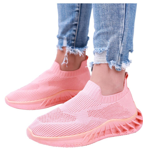 - Elastyczne damskie buty sportowe wykonane z miękkiego materiału w pomarańczowym kolorze.
