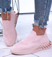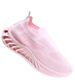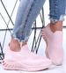- Elastyczne damskie buty sportowe wykonane z miękkiego materiału w różowym kolorze.