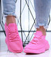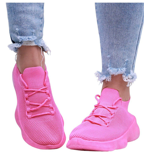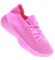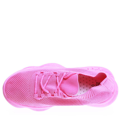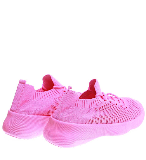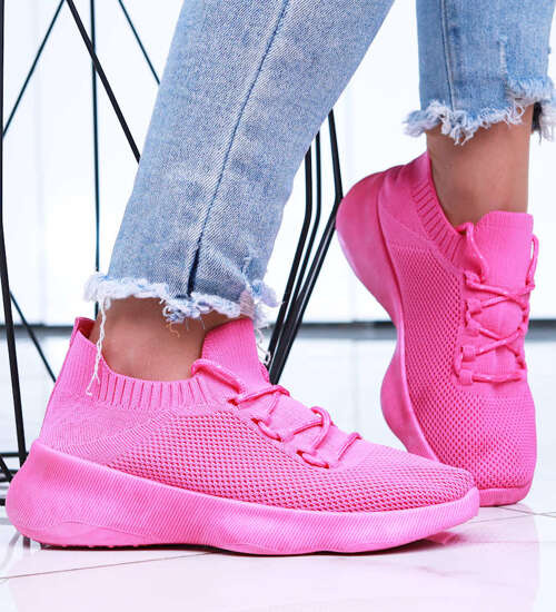 - Fuksjowe damskie buty sportowe wykonane z miękkiego materiału.