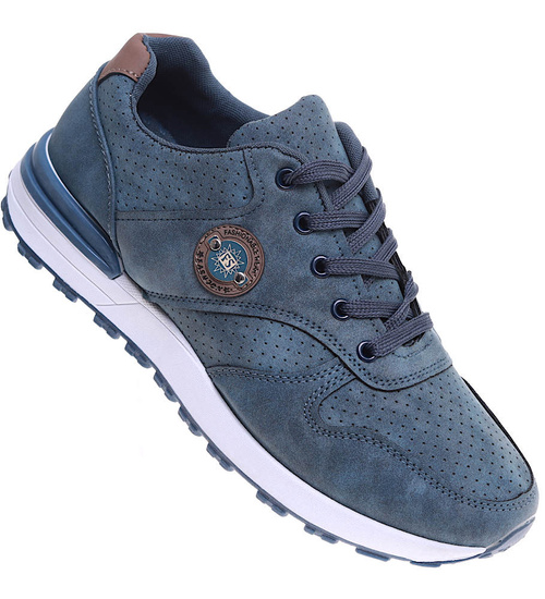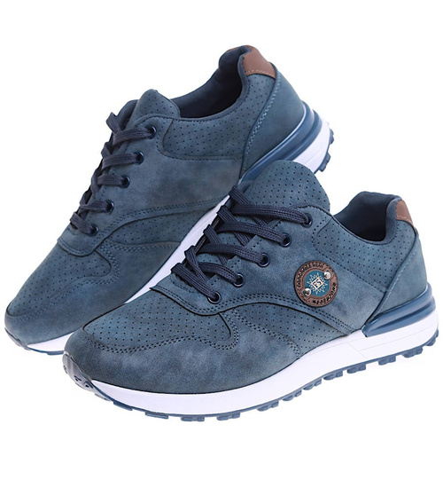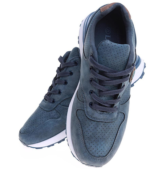 Sznurowane niebieskie męskie buty sportowe /A1-3 15896 T482/