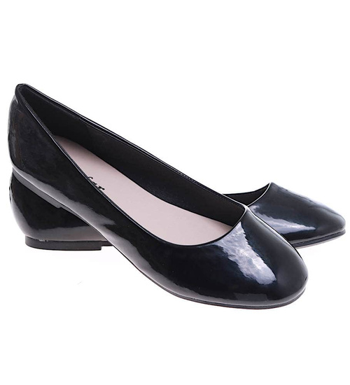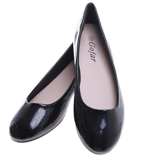 - Wykonane z błyszczącego materiału skóropodobnego, te baleriny łączą wygodę z dobrym wyglądem.