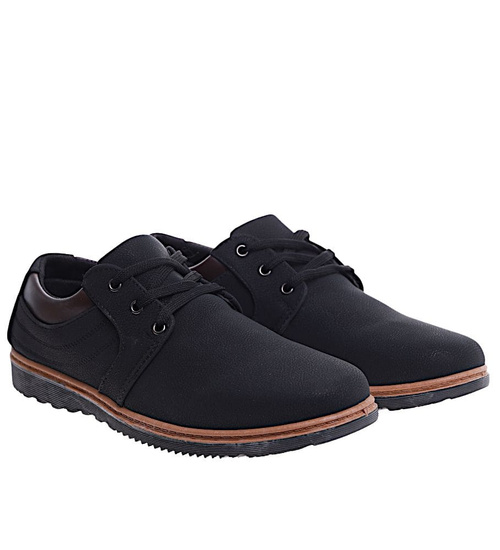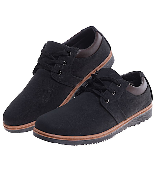 Sznurowane męskie półbuty czarne /B3-1 15875 T268/