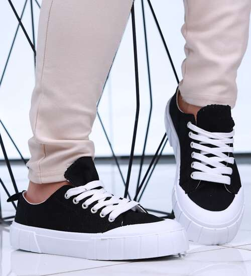 Czarne niskie trampki damskie z tkaniny /D3-1 15968 G157/
