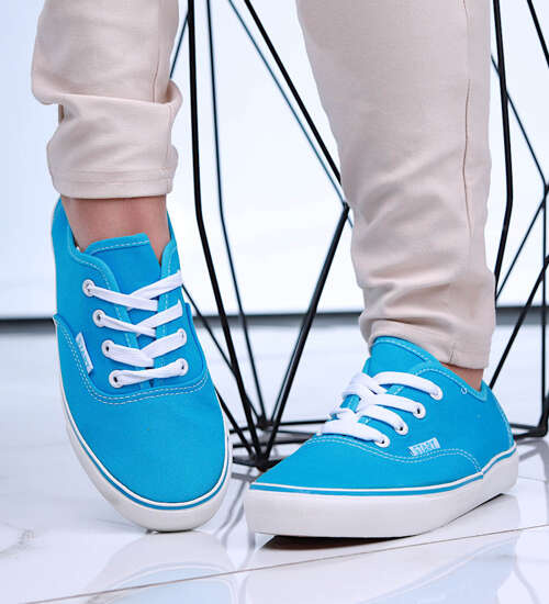 Turkusowe niskie tenisówki damskie z tkaniny /E9-2 15982 G152/