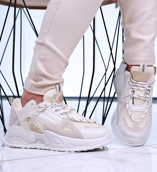 Beżowe buty sportowe damskie /F7-3 15957 G276/