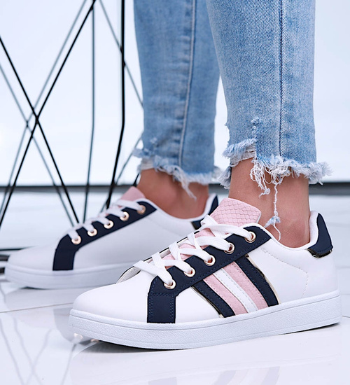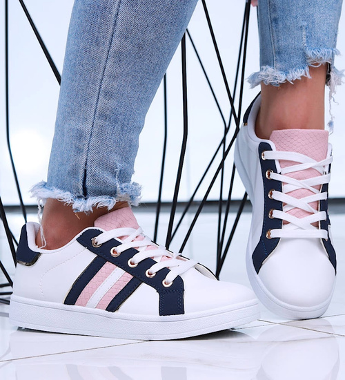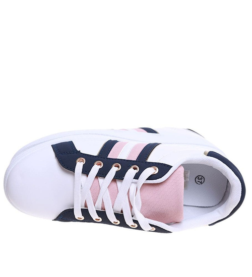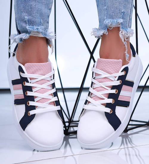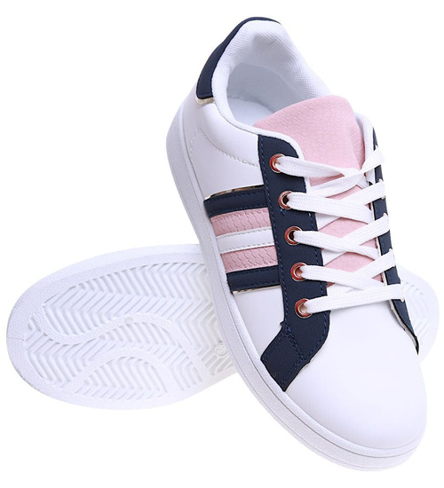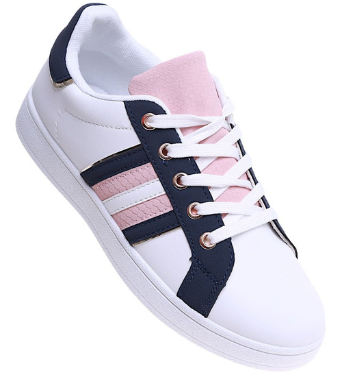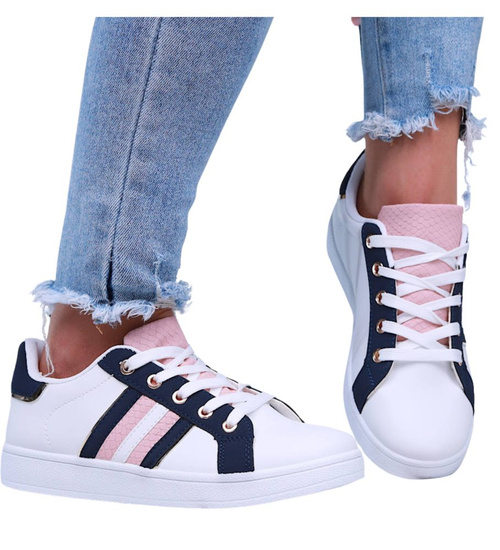 - Wiązane damskie trampki wykonane z miękkiego, skóropodobnego materiału.